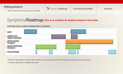 A print version of the Symptom Roadmap shows the unique and overlapping symptoms that can occur with some mental illnesses.