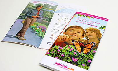 Seasonal allergies affect people of all ages. The Singulair® brochure used photo-realistic imagery to engage young readers.