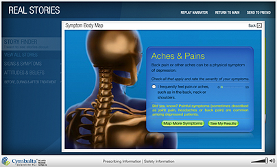 Interactive animations, such as the Body Symptom Map, encouraged viewers to learn more about depression and treatment options.