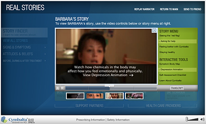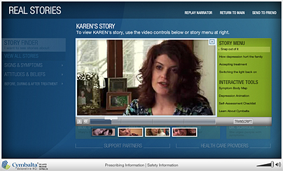 the Real Stories web site enabled people suffering from depression to view personally relevant stories through a “storyfinder” filter that matches them to their symptoms, attitudes, and beliefs about the disease.
